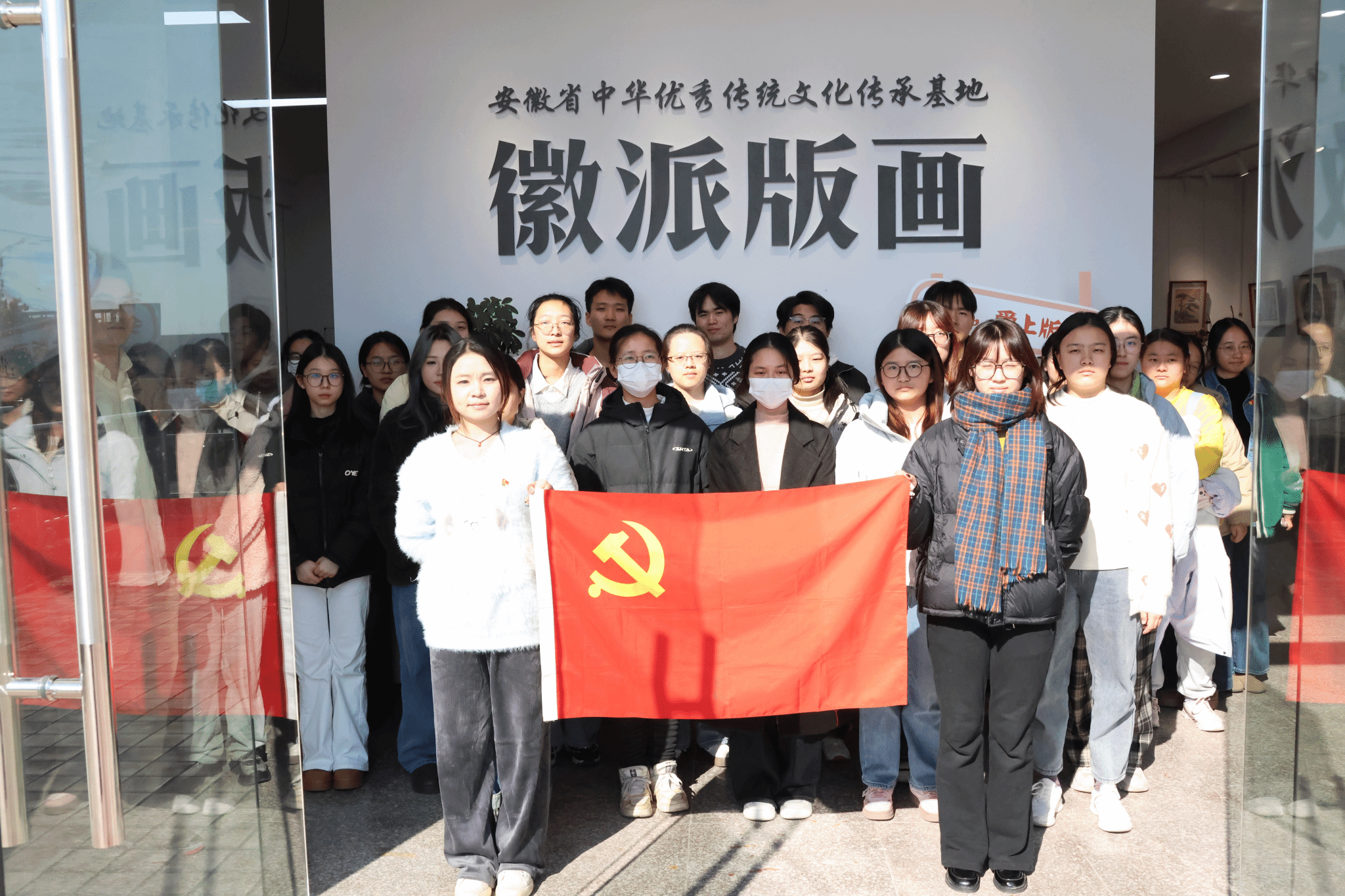 在座谈会结束后,学生党员一起参观了设计作品展览与徽派版画传承基地。面对琳琅满目的艺术设计作品,大家沉浸在美的氛围中,深切体会到艺术与设计的感染力。