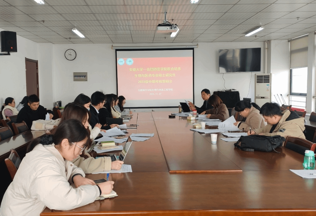 2025年11月27日上午,必威BETWAY官网在行知楼1502会议室,顺利举行合肥师范学院-安徽大学联合培养生物与医药专业硕士研究生2023级中期考核与2024级开题报告答辩会。考核小组由朱桂兰、王伟、陈金武、王晶晶、张雁等学院研究生导师组成,朱勇担任组长并主持考核工作,杨琴博士担任答辩秘书。2025级生物与医药专业研究生以及部分本科生参加了答辩会。