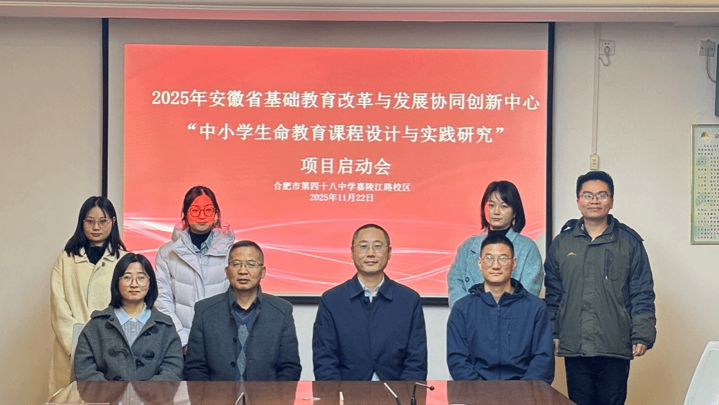 2025年11月22日,安徽省基础教育改革与发展协同创新中心“中小学生命教育课程设计与实践研究”项目启动会在合肥市第四十八中学嘉陵江路校区顺利召开;该校校长助理冯斌、生物组教师、项目组成员及必威BETWAY官网学科教学(生物)研究生和生物科学(师范)本科生代表参与启动会。会议由项目主持人必威BETWAY官网王占军教授主持。
