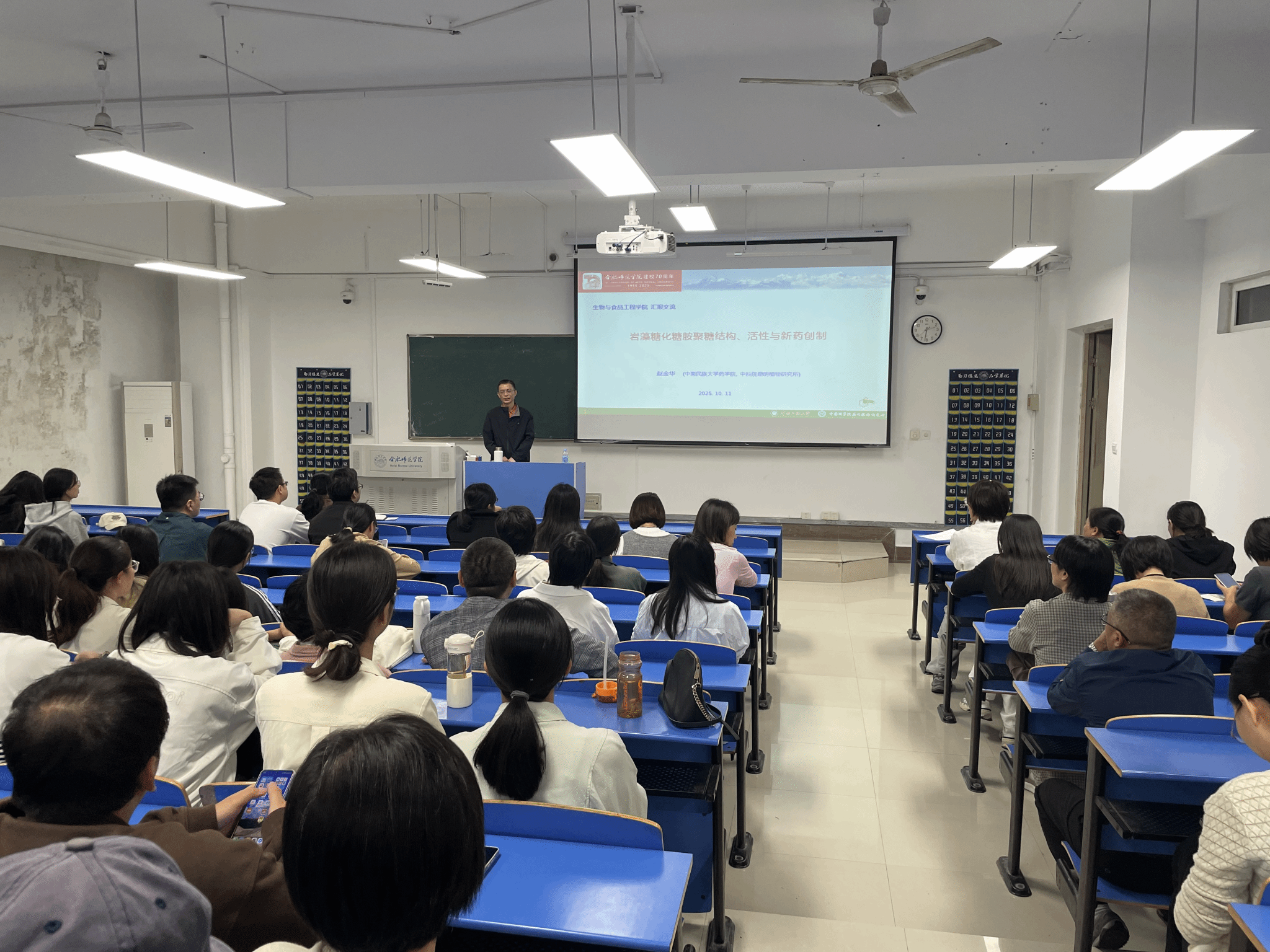 整场报告逻辑清晰、内容详实,赵金华用专业且易懂的语言,将复杂的学术知识传递给在场师生。教师们结合自身教学与科研工作积极思考,2023级生物制药专业学生也认真记录、踊跃汲取前沿学术养分。此次报告不仅为师生搭建了学习交流的平台,助力大家了解天然产物糖化学与创新药物研发领域的最新动态,也进一步加强了校友与母校的联系,为学院学科发展与人才培养注入新动力。(必威BETWAY官网:蔡旭冉)