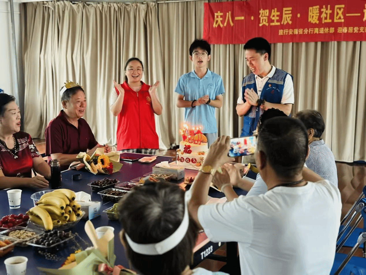 鲜花敬英雄,温情暖兵心。小先生带着孩子们手捧鲜花来到安徽建行老干部退休中心,为老兵们戴上生日帽,献上饱含敬意的鲜花。当生日烛光亮起,《生日快乐歌》回荡全场,老兵们眼中泛起泪光。83岁的张爷爷轻抚孩子头顶,追忆18岁从军岁月:"当年扛枪卫国,今日见你们成长,一切守护都值得!"